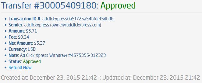I am getting paid daily at ACX and here is proof of my latest withdrawal. This is not a scam and I love making money online with Ad Click Xpress. Start here: